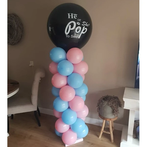 Gender Reveal Pilaar met 90 cm ballon 'He or She, Pop To See! + 50 lucht ballonnetjes