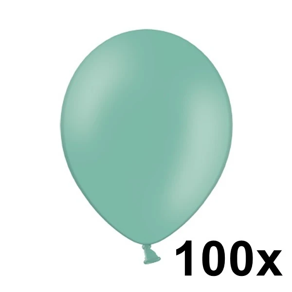 Deze groene ballonnen van Belbal hebben een doorsnede van ongeveer 30 cm en worden per 100 stuks geleverd.