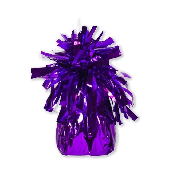 Ballongewicht in metallic paars folie.