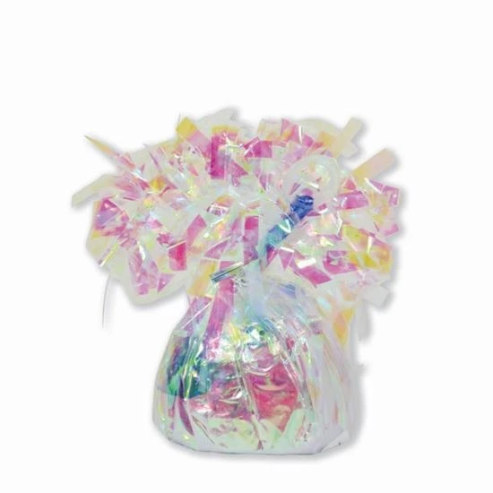 en heeft een lusje om een tros ballonnen aan te bevestigen.