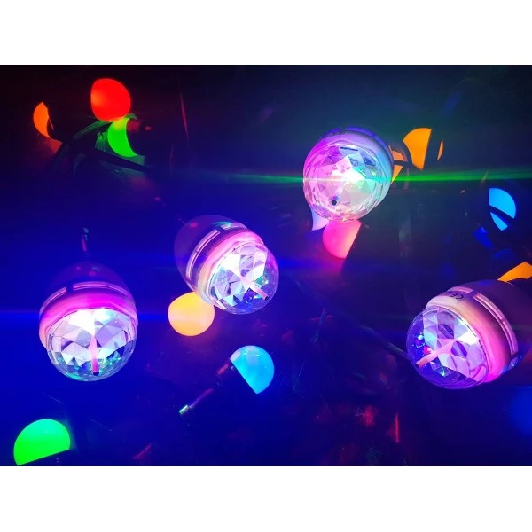 Voorzien van 16 gekleurde ledlampen en 4 disco lampen.