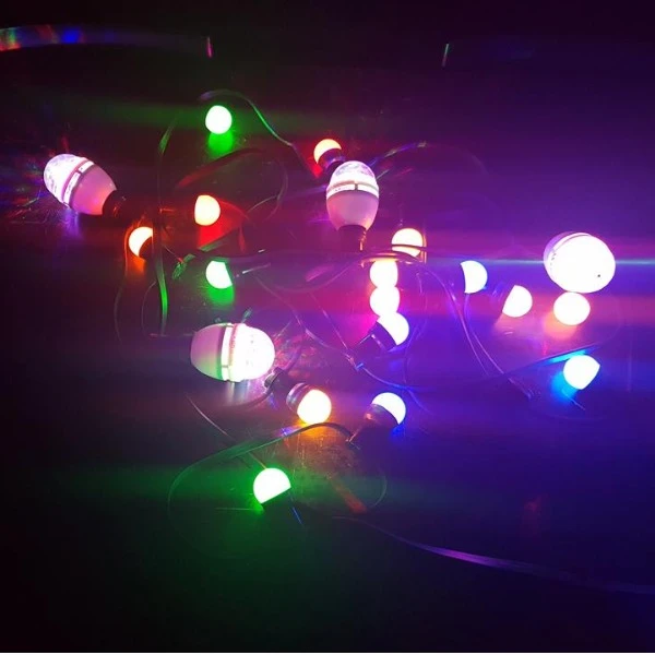 De prikkabel disco led gekleurd met 4 disco lampen 10 meter lang.