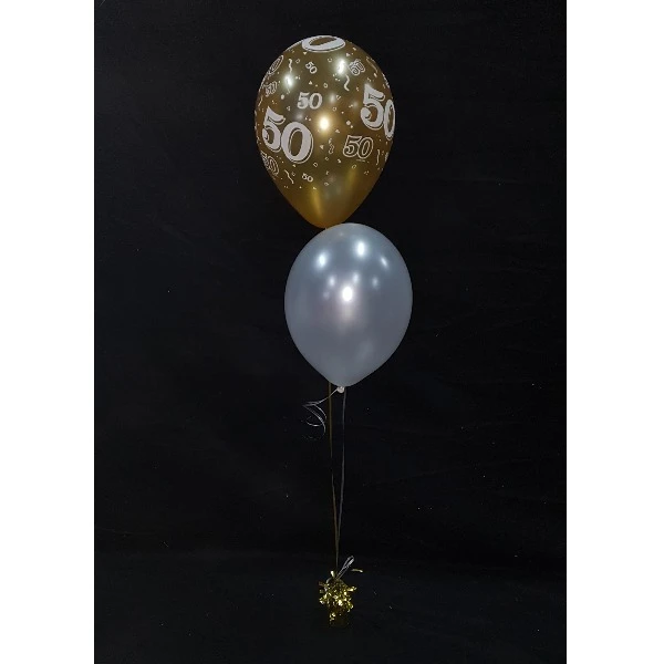Tafel decoratie met 2 heliumballonnen metallic/bedrukt