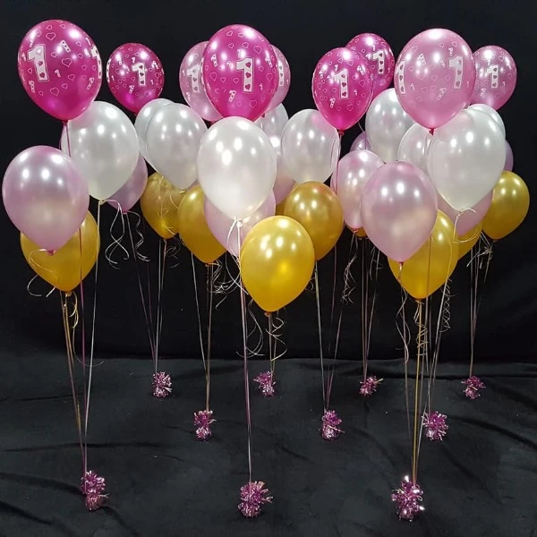 De decoratie bestaat uit 3 helium ballonnen