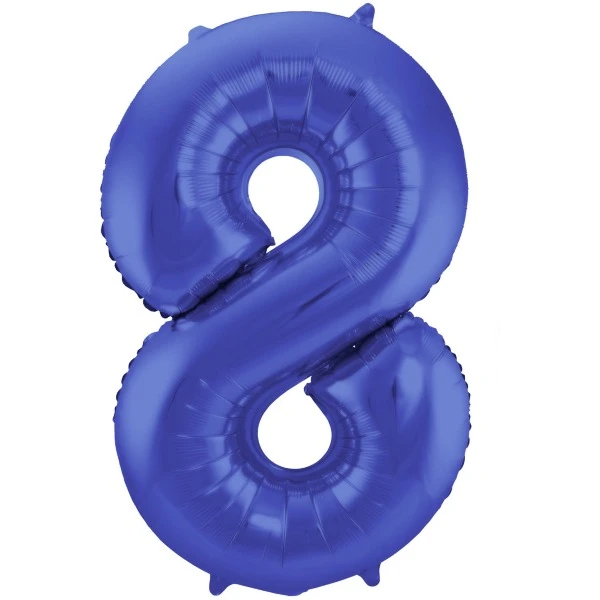 Blauwe Metallic Mat Folieballon Cijfer 8