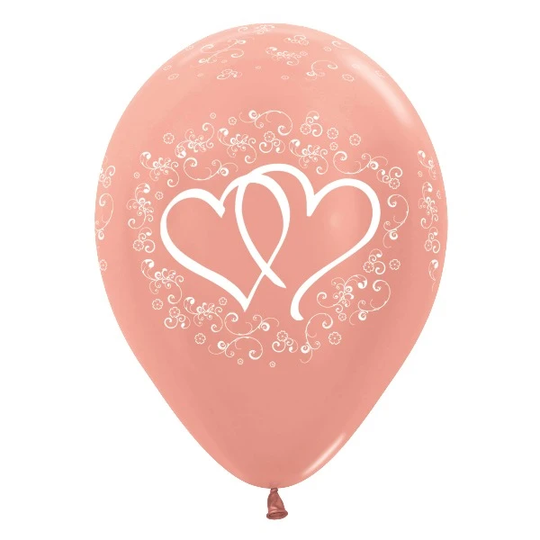 Op deze rosé gouden ballon staan verstrengelde harten in een sierlijk tekening afgebeeld.