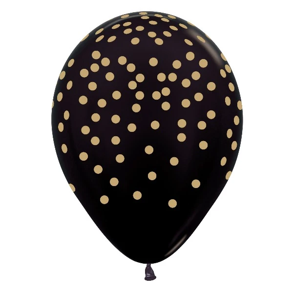 Mooie zwarte ballonnen met opdruk van confetti, in goudkleurige stippen.