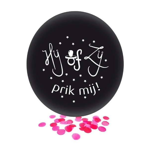 Hij of Zij, prik mij! confetti ballon (Ø61cm) - Roze