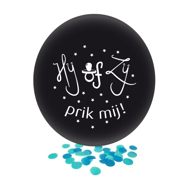Hij of Zij, prik mij! confetti ballon (Ø61cm) - Blauw