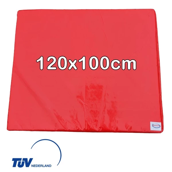 De afmetingen van de valmat zijn 120 x 100 x 4 cm.