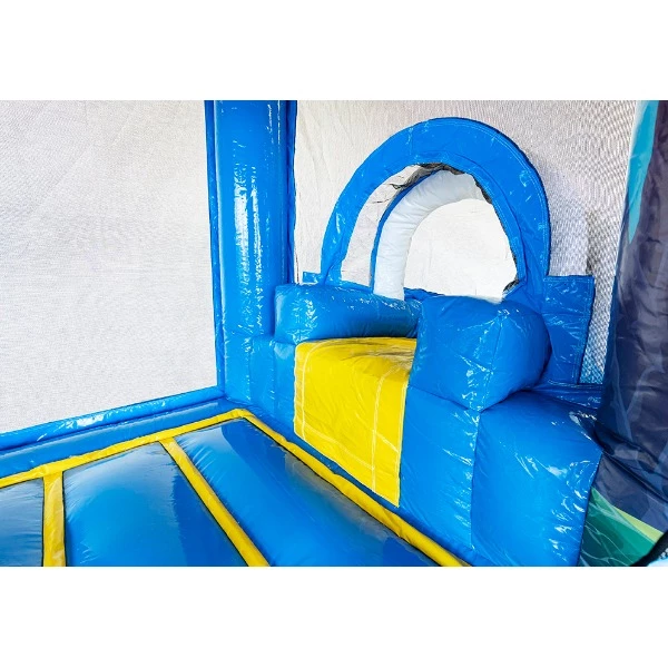 Dit vrolijke en compacte springkussen met Seaworld thema is ideaal voor de kleinere kinderen. Dankzij het springvlak, gecombineerd met de originele ronde glijbaan, zullen kinderen met veel plezier springen en glijden! Uniek aan de Mini met Slide is de glijbaan die aansluit op de opstap. Kinderen kunnen makkelijk het springkussen weer in en krijgen geen vieze voeten.