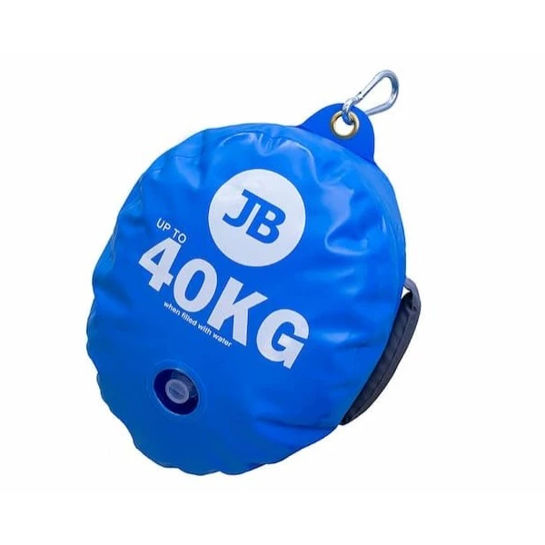 De waterzakken hebben handige handvatten aan beide kanten zodat je ze makkelijk kunt verplaatsen, en een vulopening die met een draaidop wordt afgesloten. Elke zak waterzak wordt geleverd met een karabijnhaak waarmee de waterzak aan de inflatable bevestigd kan worden.