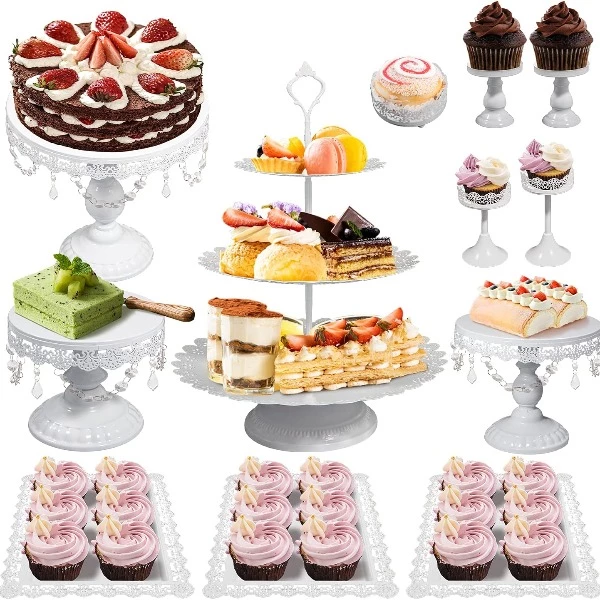 Maak uw tafeldecoratie helemaal af met deze prachtige witte taartenplateau's set.