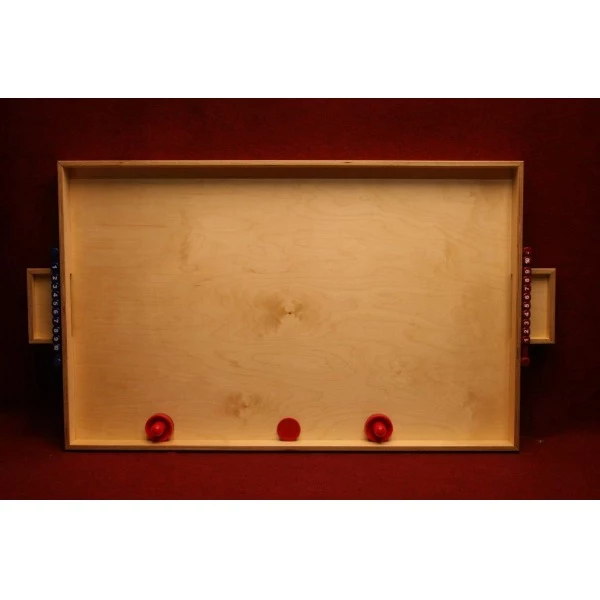 Elke speler moet proberen met de speelschijf de puck bij de tegenstander in het doel te schuiven.