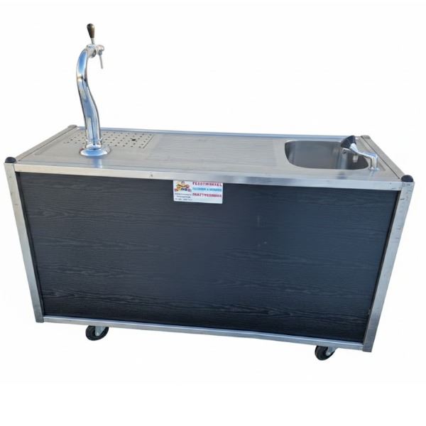 Mobiele bar 1.7 mtr. Zwart met spoelbak en tapinstallatie.