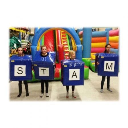 Met 4 teamgenoten proberen zo snel mogelijk de letterpakken in de juiste volgorde te zetten.