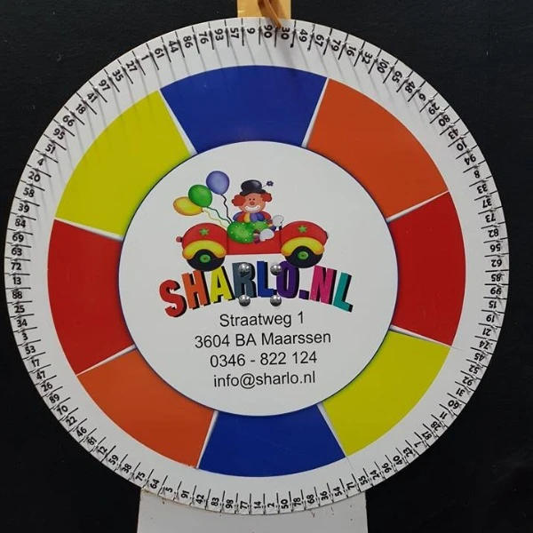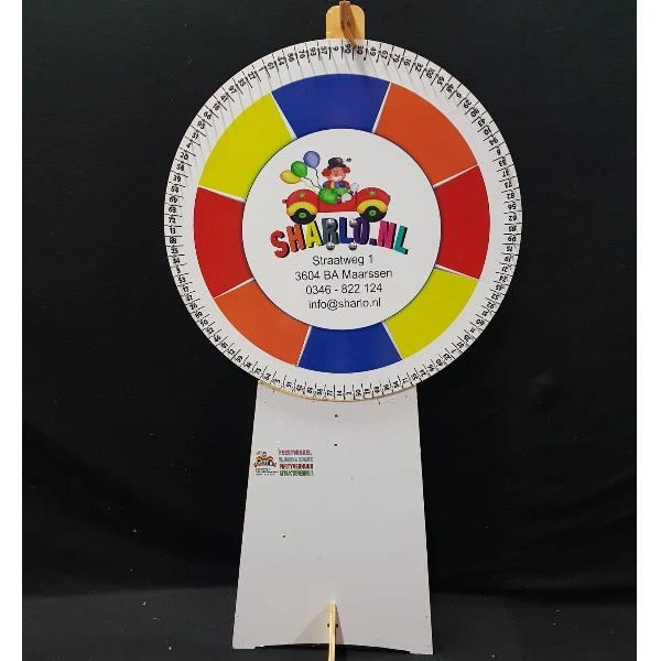 Dit 2 meter hoge rad maakt door middel van draaien het winnende nummer bekend.