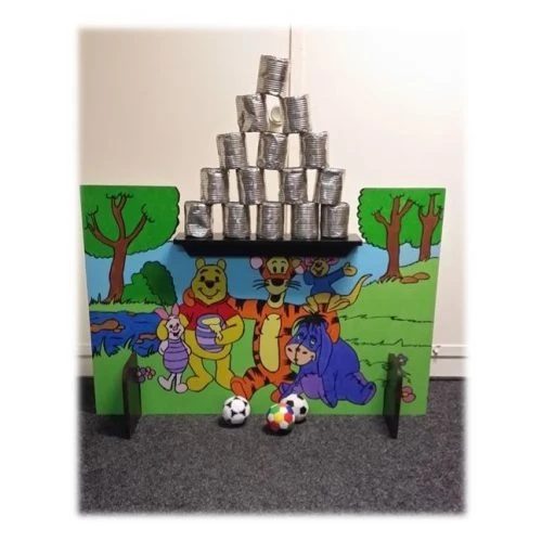 de blikken van de muur van Winnie de Poeh en zijn vriendjes te gooien
