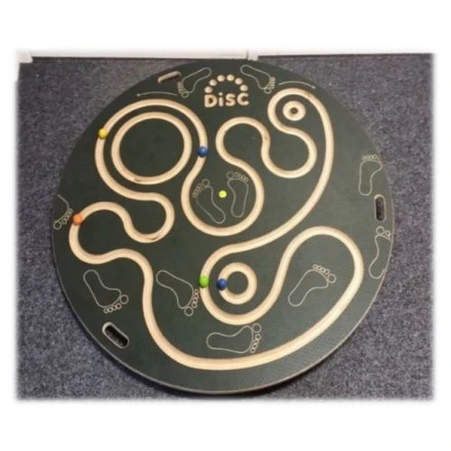 Probeer d.m.v. te balanceren de knikker de route te laten volgen.