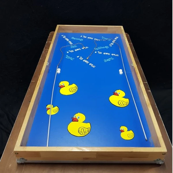 Probeer met de meegeleverde hengels de meeste eendjes te vangen in de kortste tijd.